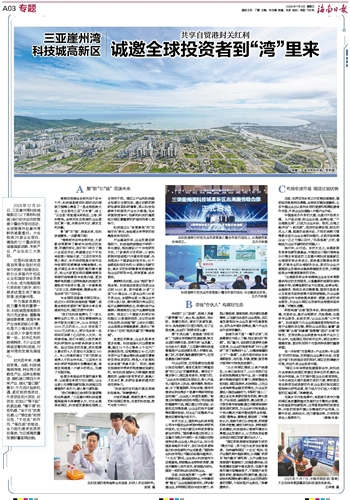 作为国家战略科技力量布局的重要一环,科技城是海南肩负先行先试使命、集聚高端创新要素、培育未来产业体系的核心引擎,也是不少高科技外资企业进入中国市场的第一站。封关红利的持续释放,不少企业持续坚定看好科技城,对崖州湾的发展充满信心。