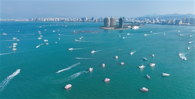 ②1月2日,众多游艇从码头出发,驶向三亚湾海域。海南日报全媒体记者 王程龙 摄