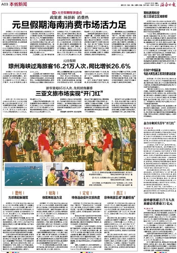 元旦假日,全省经营性住宿单位平均入住率79.01%,同比提高3.8个百分点。“从假期的第一天起,我们的房间就全部订满了,一直都没有空过。”海口荣山寮乌托邦民宿的主理人李政桐说,“这种火爆的场面,让我们对今年的市场更加有信心。”