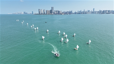 近日,海口西海岸蔚蓝海面帆影点点,来自全国各地的帆船帆板爱好者在此展开冬训,构成一幅动感十足的滨海画卷。