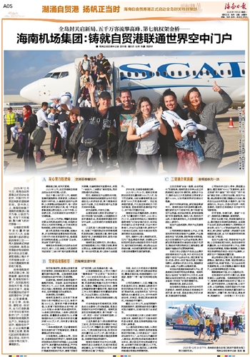 ■ 海南日报全媒体记者 邵长春 通讯员 杜涛 张翼 周舒妍2025年12月18日,海南自由贸易港正式启动全岛封关,中国对外开放迎来新的里程碑时刻。琼州热土上,海南控股旗下海南机场集团以蓝天为卷、以航空为笔,书写下开放赋能、聚力腾飞的时代答卷——