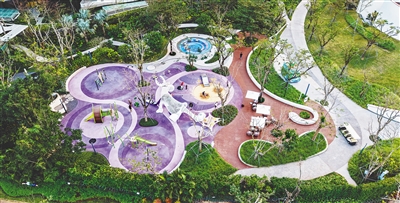 俯瞰江东麓岛小区童梦乐园区域。本版图片除署名外均由海南日报全媒体记者 袁琛 摄