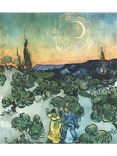 梵高油画作品《在月光下散步》。