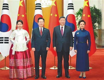 习近平指出,当前世界百年变局加速演进,国际形势更加变乱交织。中韩在维护地区和平、促进全球发展方面肩负重要责任,有广泛利益交集,应当坚定站在历史正确一边,作出正确战略选择。80多年前,中韩两国付出巨大民族牺牲,赢得抗击日本军国主义的胜利。今天更应携手捍卫二战胜利成果,守护东北亚和平稳定。作为经济全球化的受益者,中韩要共同反对保护主义,践行真正的多边主义,为推进平等有序的世界多极化、普惠包容的经济全球化作出贡献。