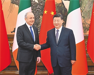 新华社北京1月5日电(记者董雪)1月5日上午,国家主席习近平在北京人民大会堂会见来华进行正式访问的爱尔兰总理马丁。习近平指出,中国和爱尔兰都爱好和平、开放包容、自立进取,两国人民通过斗争赢得国家独立和民族解放,依靠几代人接续奋斗迈向现代化。2012年两国建立互惠战略伙伴关系以来,双边贸易额翻了两番,相互投资均衡发展,两国人民双向奔赴,助力各自国家发展。相互尊重、平等相待、互利共赢是中爱关系长期稳定发展的宝贵经验,双方要共同传承和弘扬。中方愿同爱尔兰加强战略沟通,深化政治互信,扩大务实合作,为两国人民谋福祉,为中欧关系添动力。