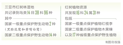 三亚市林业局相关负责人介绍,近年来,该市积极开展湿地保护工作,重点实施海棠河外来植物防治与红树林湿地恢复项目、铁炉港红树林湿地修复项目,通过清理外来物种拉关木和无瓣海桑,为本地红树植物的自然生长创造了良好的生态环境。该湿地成功入选省级重要湿地,为三亚下一步申报国际重要湿地、创建国际湿地城市奠定了坚实基础。