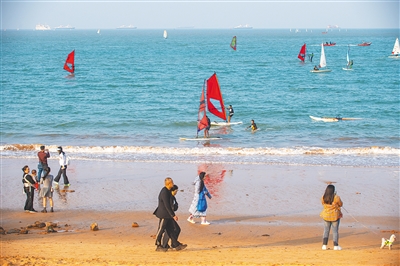 一月五日,不少市民游客在海口西海岸漫步,感受冬日暖阳。 海南日报全媒体记者 袁琛 摄