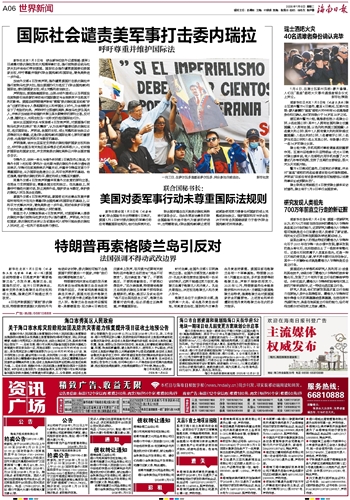 4日在声称美国已“掌控”委内瑞拉后,特朗普接受美国《大西洋》月刊电话采访时称,委内瑞拉可能不会是美国干预的最后一个国家,并称“我们绝对需要格陵兰岛”。
