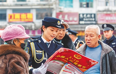 1月10日,警察在贵州省黔西市水西广场为市民宣传防电信诈骗知识。