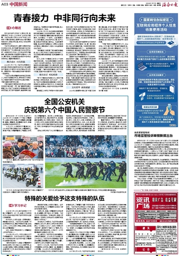 新华社北京1月10日电(记者熊丰)2026年1月10日是第六个中国人民警察节,全国公安机关通过升挂警旗、奏唱警歌、重温入警誓词、组织警营开放日、表彰先进等系列活动庆祝节日。10日上午,公安部举行升警旗仪式,200余名干部代表整齐列队,向警旗敬礼,高唱《中国人民警察警歌》,并重温公安机关人民警察誓词。连日来,公安部还通过召开新闻发布会、推出特别节目、组织融媒体直播等,向人民群众报告一年来公安工作和公安队伍建设取得的新进步新成效,展示公安机关维护国家安全和社会稳定、守护人民幸福和安宁作出的新担当新贡献。