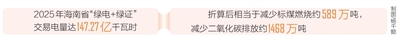 本报讯(海南日报全媒体记者邵长春 通讯员郭卫华 许婉莹)海南日报全媒体记者从海南电力交易中心获悉,2025年海南省“绿电+绿证”交易电量达147.27亿千瓦时,首次突破百亿千瓦时,较2024年14.88亿千瓦时的交易规模增长8.9倍,为海南自贸港绿色低碳发展注入强劲动能。绿色电力,简称绿电,是指生产过程中二氧化碳排放量趋近于零的电能,主要来源于太阳能、风能等可再生能源;绿证作为可再生能源电力消费的唯一凭证,每张对应1000千瓦时绿色电力,是企业践行绿色消费、履行消纳责任权重的重要依据。2025年达成的百亿级绿电交易电量,折算后相当于减少标煤燃烧约589万吨,减少二氧化碳排放约1468万吨。