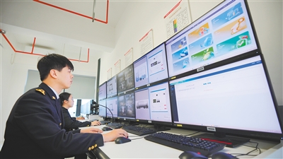 日前,在海口新海港和南港“二线口岸”(货运)集中查验场,海口海关关员正紧盯屏幕,对出岛货车实施智能审图。