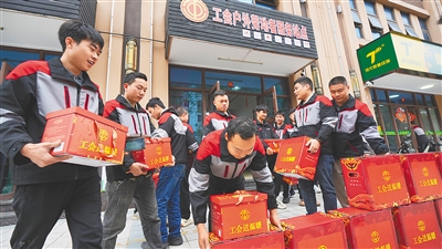 近日,在海南顺丰速运有限公司滨濂路工会驿站,快递员高兴地领取慰问“大礼包”。当天,海南省总工会开展送温暖调研慰问活动。据悉,活动将持续至3月。