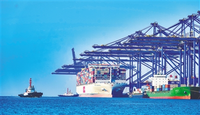 1月11日,“东方紫荆花”轮平稳靠泊洋浦国际集装箱码头。海南日报全媒体记者 陈元才 摄