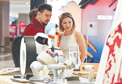 海南离岛免税新政实施后,外国顾客在三亚国际免税城选购商品。新华社记者 郭程 摄