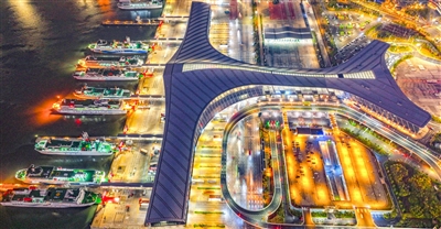 1月4日晚,海口市新海港码头灯火通明,客滚船有序进出港,一派繁忙景象。海南日报全媒体记者 陈元才 摄