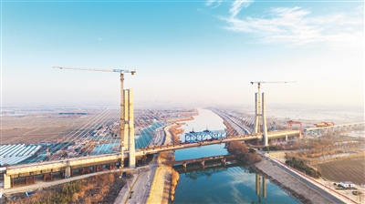 沪宁合高铁南京特大桥跨滁河斜拉桥。 新华社发