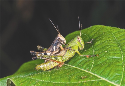 海南华穆蜢雌雄个体交配照。