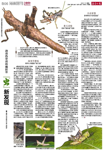 在海南华穆蜢的研究成果发表后不久,另一种隐藏在海南热带雨林中的蝗虫新物种——黄氏琼蝗,也相继发表。