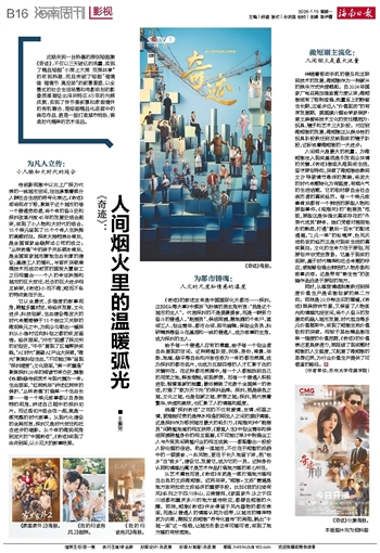 传统影视剧中以北上广深为代表的一线城市空间,往往承载着部分人群社会生活的符号化表达。《奇迹》却将视点下移,聚焦于这个城市的每一个普通劳动者,将个体的奋斗史和深圳改革开放45年的发展史结合起来,实现了小人物和大时代的结合。15个单元呈现了15个个体人生抉择的高潮时刻。深夜大排档表白背后,是全国首家金融押运公司的成立;“丛林奇遇”中的亲子关系破冰背后,是全国首家城市腹地生态长廊的建设;基建工人的婚礼,与首次突破滑模技术而成功封顶的国贸大厦竣工之日相重合……个人的命运抉择和城市的巨大变迁、社会的巨大进步相互映照,《奇迹》小而不微、短而不俗的特点就在于此。
