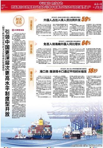 有效激发市场活力,发展动能加速集聚。封关首月全市新增经营主体1.58万户,同比增长12.62%,占全省57.92%。