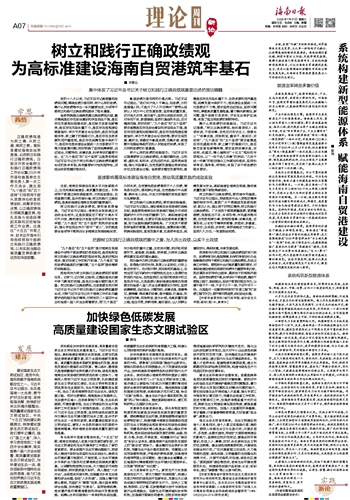 正确政绩观是为政之德、从政之道、施政之要。高标准建设海南自由贸易港,必须树立和践行正确政绩观。日前召开的全省树立和践行正确政绩观工作会议暨2026年市县和省直单位主要负责人第一次工作交流会,提出用“九个是否”和“五个坚持”引导领导干部从思想深处校准政绩坐标,统筹多目标决策,以正确政绩观引领高质量发展,用扎实奋斗创造经得起实践和历史检验的工作业绩。这是在“十五五”开局之年、封关运作首年引导各级领导干部树立和践行正确政绩观,以务实担当推动高质量发展的集中动员和深层部署。