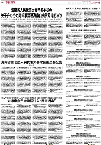 全省各级人大及其常委会要充分发挥地方国家权力机关的作用,紧扣高标准建设海南自由贸易港的目标任务,正确、有效、依法行使职权。要统筹运用“三个立法权”特别是用好海南自由贸易港法规制定权,围绕重点领域、新兴领域、涉外领域,积极推进探索性、创新性、引领性立法,加快建立健全与国际规则紧密衔接、符合海南发展定位的法规体系,为高标准建设海南自由贸易港提供坚实法治保障;要统筹运用法定监督方式,突出重点、扭住关键深入监督问效,不断提升监督刚性和实效,支持和推动“一府一委两院”高质高效落实省委关于高标准建设海南自由贸易港的各项决策部署;要积极创新代表工作,提高服务保障代表依法执行职务的水平,为代表在高标准建设海南自由贸易港中发挥好参加决策、监督推动、桥梁纽带、模范带头作用创造良好条件。