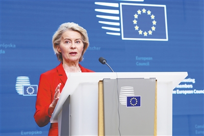 1月23日凌晨,在比利时布鲁塞尔,欧盟委员会主席冯德莱恩出席欧盟紧急峰会后的新闻发布会。 新华社发