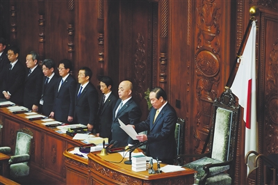 一月二十三日,日本众议院议长额贺福志郎在众议院全体会议上宣读解散诏书。新华社发