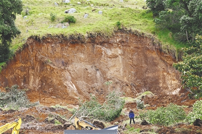 图为1月24日在新西兰北岛普伦蒂湾地区芒阿努伊山拍摄的山体滑坡地点。新华社/路透