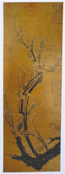 宋代画家扬无咎的《四梅图》,元代画家吴镇的《梅花图》、王冕的《墨梅图》,明代画家陈录的《梅花图》、刘世儒的《墨梅图》,清代画家恽寿平的《梅花图页》、八大山人的《古梅图》、金农的《红绿梅花图》、渐江的《松石梅花图》、罗聘的《二色梅花图》、虚谷的《梅鹤图》,以及清末民初画家吴昌硕的《梅石图》《绿梅通景图》,近现代画家齐白石的《万玉香雪》、张大千的《红梅图》等,不论是立轴、长卷,还是扇面、册页,不论是红梅、绿梅,还是墨梅、白梅,都带给人们以无限美的视觉享受,也为画坛增添不可多得的艺术珍品。