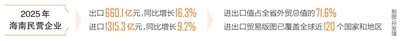 创新驱动产业高质量发展。在“零关税”自用生产设备、“两新”等政策利好的推动下,2025年海南民营企业加快设备更新升级步伐,进口机电产品371.6亿元,同比增长24%,夯实创新发展硬件基础,为产业高质量发展注入强劲动能。