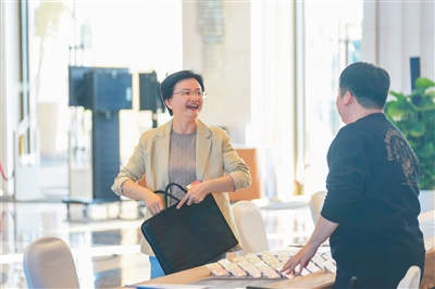 下图:1月25日,参加省政协八届四次会议的省政协委员(左)到驻地酒店报到。