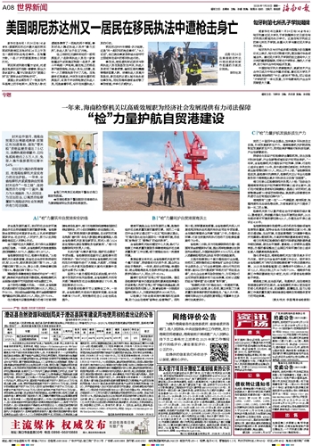 封关运作首月,海南自贸港交出亮眼成绩单:政策红利加速落地,首批“零关税”货物监管货值达7.5亿元;消费热度持续攀升,日均免税购物约2.5万人次;免签入境外国旅客同比增长64%……这份活力涌动的答卷背后,有海南检察机关坚实有力的法治护航。一年来,全省检察机关紧紧围绕自贸港封关运作“一号工程”,坚持高质效办好每一个案件,着力为大局服务、为人民司法、为法治担当,以高质效检察履职为海南经济社会发展提供有力司法保障。