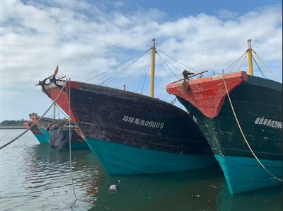 琼海潭门一些渔船船头涂上了红漆。王益友供图