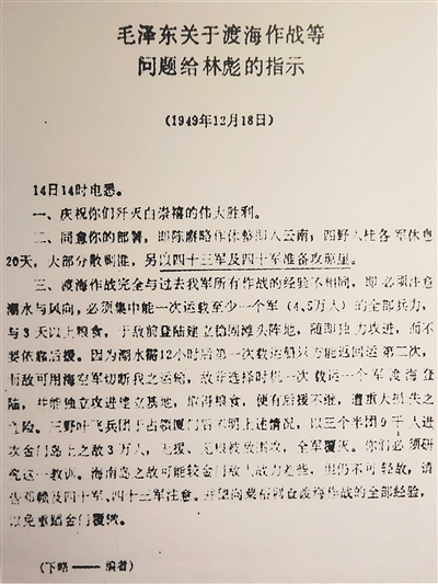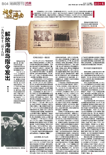 海南省史志馆展厅里,陈列着一份特殊的档案——依据毛泽东同志发出的解放海南岛的指令整理的文件。