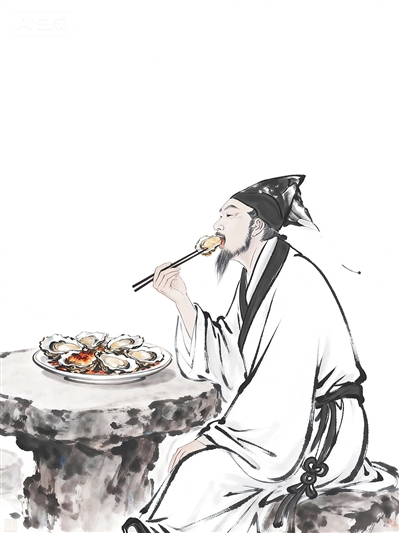 在我国沿海地区,生蚝美食古已有之,历史上一些被贬至此的文人,在他们的诗文中描写了这种海中奇珍。公元819年,唐代古文运动的倡导者韩愈被贬为潮州刺史,老家在河南的他抵达滨海之地,第一次接触海鲜,像一个充满好奇的博物爱好者,在《初南食贻元十八协律》一诗中列举了鲎、蚝、蒲鱼、章鱼、江珧柱等多种当地食材。“蚝相黏为山,百十各自生”,他看到了生蚝附石而生的景象,品尝时则战战兢兢、大汗淋漓,反映出北方士人对海鲜的不适应。