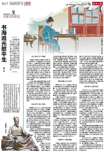 ■ 冯青苏轼慨叹海南“读无书”近400年后,丘濬用满腹诗书丈量出一条进取之路。从赤脚借书的可怜娃,到执掌国政的大学士,丘濬用一生证明,真正的读书人,能把孤岛读成芳甸,将残卷读成星河。他的人生经历向海南后学传递了一个重要信息:知识可以改变命运。