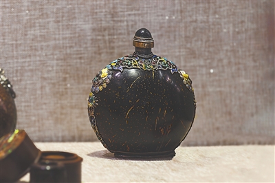 海南收藏家蔡於良珍藏的清代珐琅椰雕扁酒壶。 清风 摄