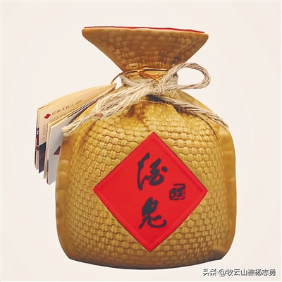 黄永玉设计的麻袋状“酒鬼”酒(馥郁香型白酒代表)酒瓶。