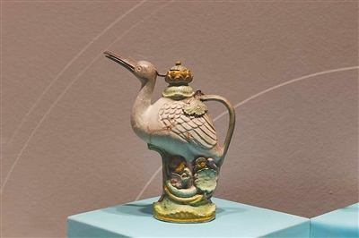 中国(海南)南海博物馆藏的明代素三彩鹭形酒壶。