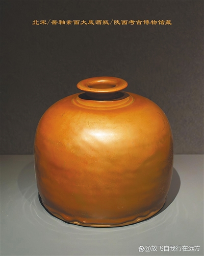 北宋酱釉素面大底酒瓶。 陕西考古博物馆藏