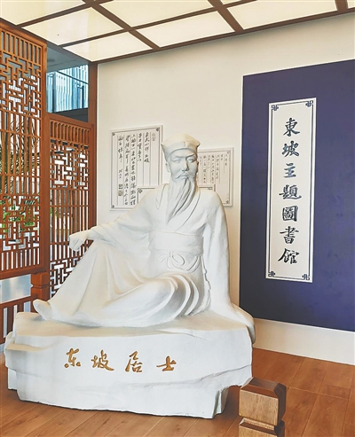 海南东坡主题图书馆里的东坡塑像。资料图