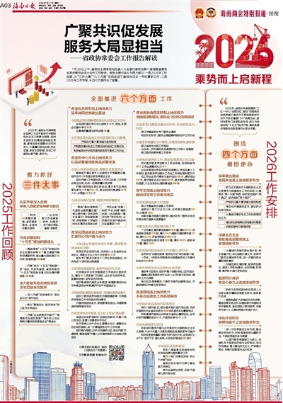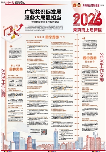 2026年,省政协将紧紧围绕“三区一中心”战略定位,锚定“把海南自由贸易港打造成为引领我国新时代对外开放的重要门户”战略目标,更好发挥专门协商机构作用,努力为我省实现“十五五”良好开局、高标准建设海南自由贸易港作出政协贡献。