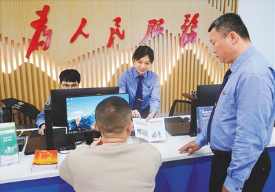 琼海市检察院派驻乡镇检察室特色品牌“红枫检行”干警接待来访群众。