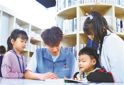 返乡大学生在城北社区陪伴孩子们读故事书。通讯员 唐晓云 摄