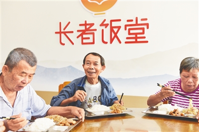 老年人在屯昌坡林村长者食堂用餐。通讯员 林小丹 摄
