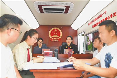 琼海法院“车载便民法庭”下乡开展巡回审判。陈海霞 摄