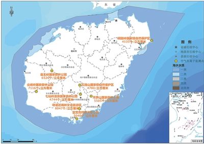 近岸海域水质和主要森林旅游区空气负离子水平示意图