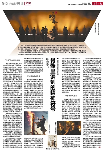 而近年来,舞剧《咏春》《侠影·咏春》、电影《叶问》《一代宗师》等众多文艺作品相继取材于咏春拳的传承故事,塑造了以叶问为代表的儒雅的“中国英雄”形象,于细微处凸显了中华优秀传统文化中的“侠之大者”。某种意义上,咏春拳算得上是镌刻在我国南派武术骨骼里的精神符号。